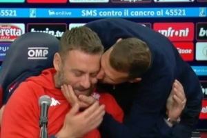 体育资讯11月11日讯 在上轮意甲联赛的赛后新闻发布会上,哲科“强吻”昔日队友德罗西。