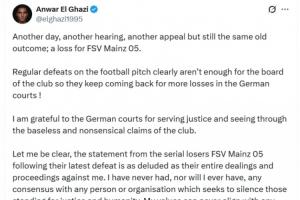 体育资讯11月13日讯 因支持巴勒斯坦而遭美因茨不当解约的埃尔加齐今日发布社媒,宣告自己对美因茨的官司再度胜诉。