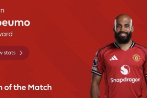 体育资讯11月2日讯 曼联客场2-2战平诺丁汉森林,赛后英超官方评选出曼联球员姆伯莫当选为本场比赛最佳球员。