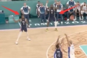 谈到巴黎奥运会决赛“金色匕首”惊世一投,库里笑道:“我到现在想到那张照片就想笑,你(指詹姆斯)和KD在那儿高举着双手(要球)。”