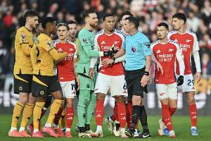 奥利弗英超共执法阿森纳62场:枪手31胜13平18负+获5点球109黄8红