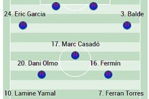 体育资讯11月22日讯 北京时间今天23点15分,巴萨将在西甲第13轮比赛中主场对阵毕尔巴鄂竞技。《阿斯报》预测了巴萨此役的首发阵容。