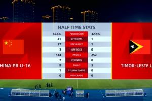 U16中国14-0东帝汶U16全场数据: