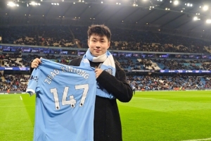 北京时间11月26日凌晨4时,欧冠联赛阶段第5轮,曼城主场不敌勒沃库森。本场比赛,新科斯诺克世锦赛冠军赵心童现场观赛,他向全场球迷展示了世锦赛冠军奖杯,并且还获赠一件印有他名字的曼城147号球衣。