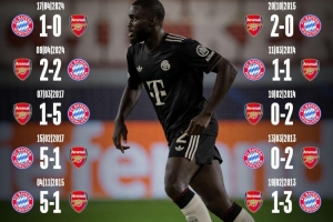 体育资讯11月26日讯 本轮欧冠将迎来拜仁对阵阿森纳的焦点大战,拜仁官推也晒出两队近10场交锋战绩。