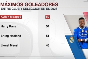 以下为足坛2025年度各项赛事进球榜(俱乐部+国家队):