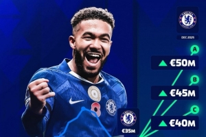体育资讯11月27日讯 德国转会市场将在12月9日更新英超球员的身价,德转官方社媒晒出图片,预热里斯·詹姆斯的身价变化。