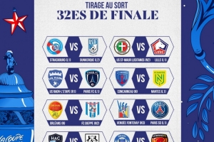 法国杯32强抽签:斯特拉斯堡VS敦刻尔克 旺代丰特奈VS巴黎