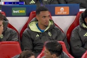 体育资讯11月05日讯 利物浦vs皇马第21分钟,转播镜头给到阿诺德。此役阿诺德重回安菲尔德,替补待命。