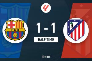 半场结束,巴萨暂1-1马竞。