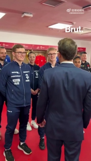 马克龙向中国乒协主席王励勤表示:“这里的乒乓球气氛最厉害。”王励勤称:“差不多。其实跟法国队水平都非常接近,都互有胜负。”