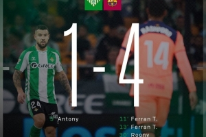 体育资讯12月7日讯 本轮西甲焦点战,巴萨上半场4-1反超贝蒂斯,数据统计显示西甲联赛历史仅有4支客队在皇家贝蒂斯主场上半场进球数达到4+:
