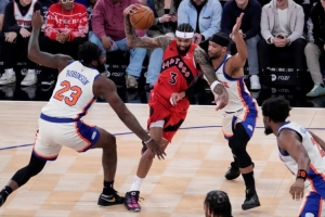 猛龙本赛季至今战绩为15胜10负,场均得116.4分,场均失113.8分。上一场比赛,猛龙主场113-121不敌凯尔特人,球队3连败,近6场1胜5负表现低迷。英格拉姆30分4篮板3助攻,斯科蒂·巴恩斯18分11篮板8助攻,珀尔特尔10分4篮板,奎克利11分5助攻,马穆拉什维利14分6篮板。本赛季英格拉姆场均21.2分5.8篮板3.7助攻,不过发挥欠缺稳定。猛龙面对对手强硬的压迫防守,往往会自乱阵脚,也体现球队不成熟的一面。RJ·巴雷特确认缺席,贾米森·巴特尔大概率缺席,贾马尔·谢德出战成疑。从往绩看,猛龙面对尼克斯已经9连败,球队本场期待战胜苦主。