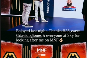 在社交媒体上,麦迪逊写道:很享受昨天晚上的时光。感谢卡拉格、大卫·琼斯以及天空体育每个照顾我的人。