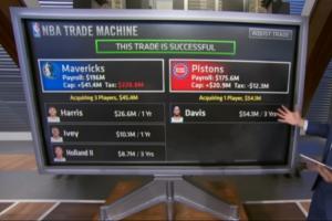 ESPN薪资专家Bobby Marks据此报道进行模拟交易,浓眉奔赴活塞,独行侠得到托拜亚斯·哈里斯+艾维+霍兰三将。