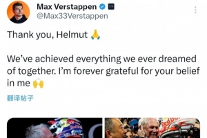 维斯塔潘更新了个人社媒,晒出了自己与马尔科的合照并配文:谢谢你,赫尔穆特。我们在一起实现了所有的梦想,我将永远感激你对我的信任。
