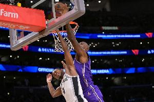 本场比赛,湖人前锋勒布朗·詹姆斯状态不错,发挥尚佳,第二节还用一记精彩绝伦的顶人隔扣震惊全场!除此之外,他还贡献了多记精彩盖帽,亮点颇丰。
