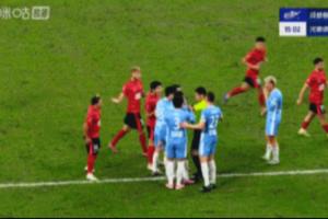 比赛第15分钟,河南队手球犯规,裁判响哨,随后胡荷韬进球。裁判判罚进球无效,由蓉城主罚任意球。