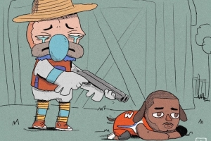 注:该球迷画了很多快船输球后吉祥物颓废摆烂的搞笑漫画,快船每输一场,他就画一幅,今天的插图都是他画的。