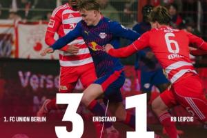 体育资讯12月13日讯 德甲第14轮先赛一场,排名第2的莱比锡1-3不敌柏林联合,仍距离榜首拜仁8分。