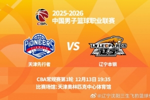 12月13日19时35分,2025-2026赛季CBA常规赛第1轮,辽宁本钢将在客场挑战天津先行者。辽宁广播电视台体育休闲频道将现场直播本场比赛。