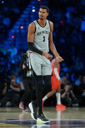 赛后,卡鲁索接受了记者采访。谈到文班亚马那次被切球后的中距离命中,他说道:“他对于每个人来说都是一个错位。他身高7英尺多,技术也很出色。在那一次进攻中,我先是把球拍掉了一次,然后在他出手的时候又打了一下,但他还是找到了办法将球投进。他真的是一位出色的球员,而且他会变得越来越好。”