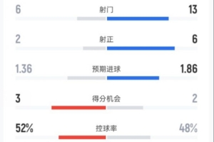 控球率52%-48%
