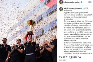 “2020年,我怀揣着远大的梦想和强烈的成长渴望来到AC米兰。这些年来,我经历了无数难忘的时刻、奋斗和强烈的情感冲击。”