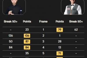 体育资讯12月16日讯 斯诺克苏格兰公开赛64进32轮次,斯佳辉4-3马克·戴维斯晋级32强。