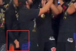 GIF-哈特偷掐布伦森屁股,大头立马转身表示怎么个事儿😂?