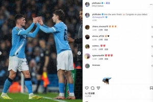 他也在赛后通过社媒晒出自己被查理·格雷换下时的两人击掌致意合照,并配文:“晋级半决赛,祝贺你上演首秀!”
