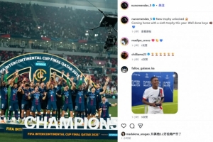 体育资讯12月18日讯 巴黎在洲际杯决赛点球击败弗拉门戈,努诺·门德斯首发踢满全场。