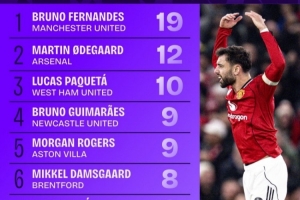 2025年英超直塞球排行:B费19次第一厄德高12次第二,萨拉赫第十
