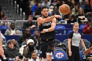 第三节比赛,上半场状态一般的布克终于开始发力,里突外投连续取分带队追分,他单节13中7,三分4中2砍下19分2助攻1抢断。