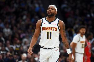比赛最后时刻,掘金后卫布鲁斯·布朗两罚不中,英格拉姆打板三分绝平无奈超时。