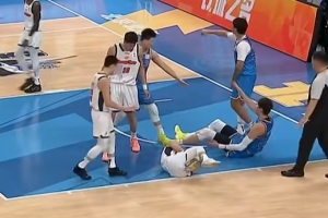 周琦被撞飞后倒地误伤徐杰膝盖!后者头盖毛巾已被队友背下场!