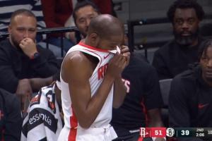 GIF-杜兰特被砸脸后爆粗