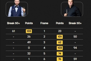 全场比赛,斯蒂芬-马奎尔打出三杆50+(50、94、59),扎克-舒尔第打出一杆61分。