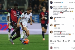 莫德里奇社媒晒出比赛照片,并写道:“精彩的团队胜利!为新年开了个好头。祝大家新年快乐!加油米兰。”