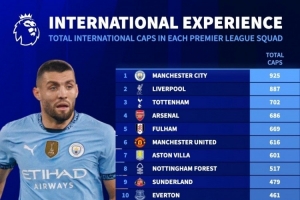 体育资讯11月1日讯 德国转会市场统计了英超各队球员为国家队出战的场次,并列出榜单,曼城925场居首,利物浦887场次席。