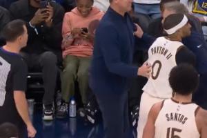 GIF-小佩顿干扰球 裁判没吹 科尔发疯了 暴怒喷裁判 2T被驱逐!