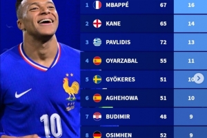 1.姆巴佩(皇马) 67场 16个点球