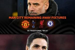 阿森纳和曼城均剩下9个英超客场,在这其中,曼城还要前往四支英超“BIG6”的客场,分别是曼联、热刺、利物浦和切尔西。