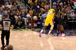 GIF-詹姆斯背传斯玛特三分命中