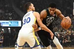生涯至今,库里和字母哥交手16次,战绩11胜5负占据优势。