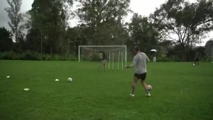 视频中J罗在雨中尝试了5次任意球攻门,皮球全部直挂球门死角,彰显了J罗出色的任意球功力。