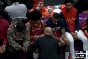 GIF-队医在替补席上给皮维检查伤势