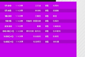 体育资讯1月10日讯 2026WTT多哈冠军赛进入1/4决赛较量,以下是今日具体对阵。