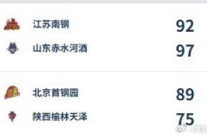 江苏南钢 92-97 山东赤水河酒,山东女篮五人得分上双,张子宇并未获得出场机会。帕克25分12篮板获得两双,曹君伟20分7助攻,考德威尔19分8篮板,杨衡瑜14分9篮板,赵雅琢14分。江苏女篮吉莉安·阿利恩27分13篮板空砍两双,许晨妍23分7篮板,贾兹明·琼斯19分8篮板5助攻,胡鑫雨10分6篮板。