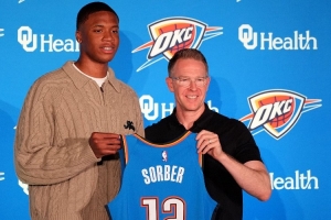 索伯现年19岁,身高2米08,体重113公斤,臂展约2米29,司职中锋/大前锋,在去年选秀大会首轮第15顺位被雷霆选中。